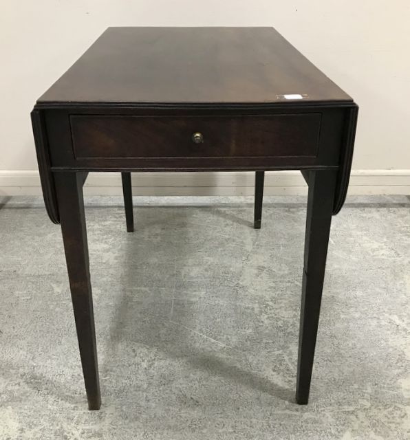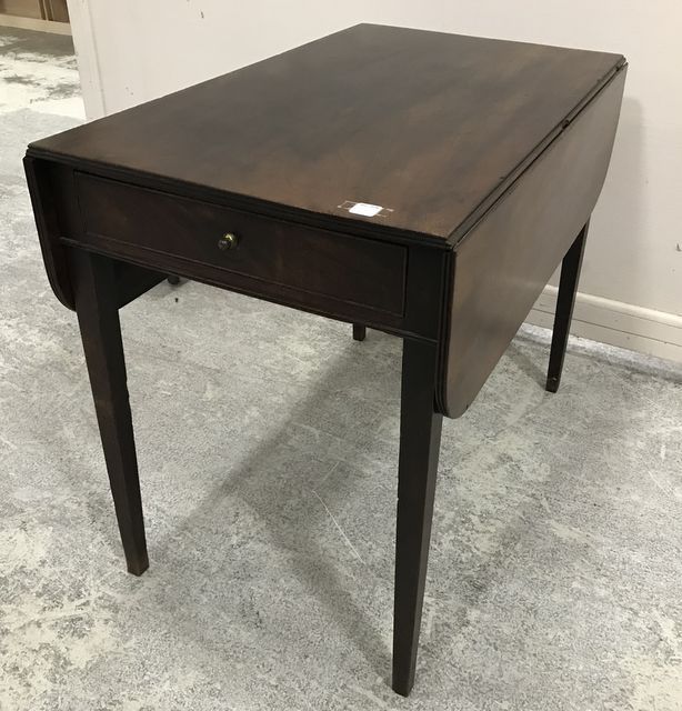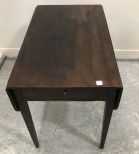 19th Century Walnut Drop Leaf Table, single drawer, tapered legs, good condition, original sold out of Blowing Rock, NC, 27"h., 20"w., 33"d. 19th Century Walnut Drop Leaf Table, single drawer, tapered legs, good condition, original sold out of Blowing Rock, NC, 27"h., 20"w., 33"d.