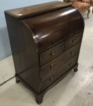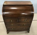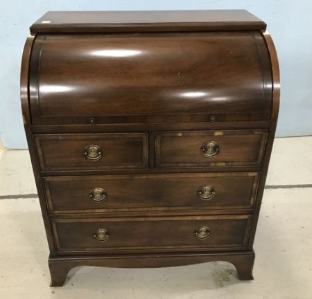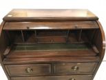 Hekman Roll Top Secretary, antique reproduction, cup roll top, slide out leather writing desk, four drawers, has some finish wear, unique piece, 38"h., 30"w., 18"d. Hekman Roll Top Secretary, antique reproduction, cup roll top, slide out leather writing desk, four drawers, has some finish wear, unique piece, 38"h., 30"w., 18"d.
