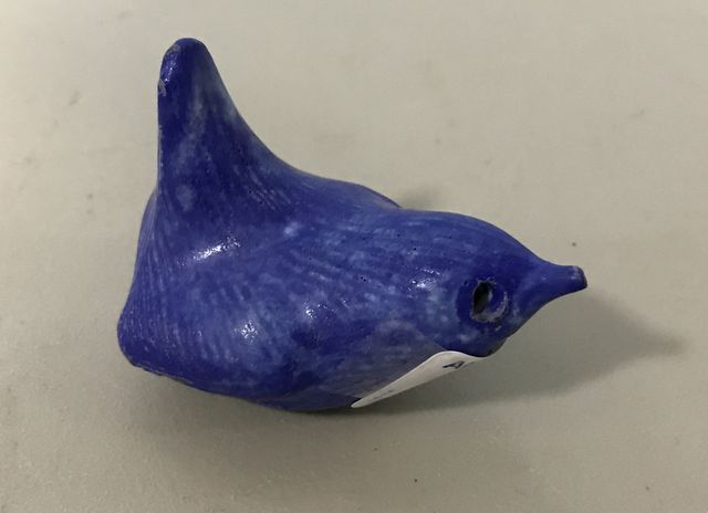 Blue small McCarty Bird Pottery, signed, 3"w. Blue small McCarty Bird Pottery, signed, 3"w.