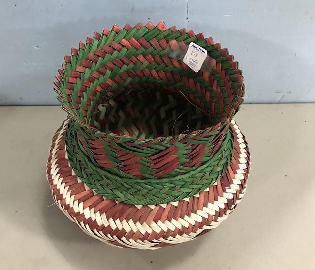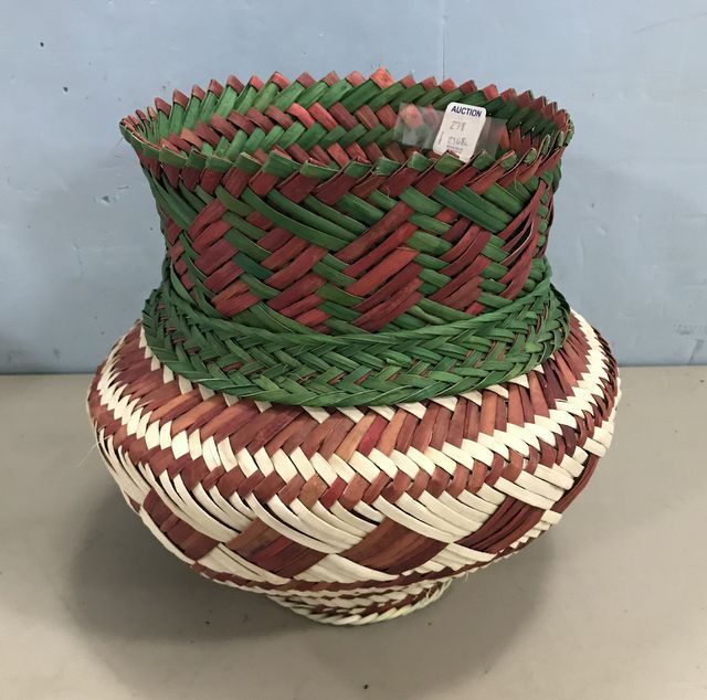 Tarahumara Agave Hand Woven Basket, hand painted, good condition, Copper Canyon, 9"h. Tarahumara Agave Hand Woven Basket, hand painted, good condition, Copper Canyon, 9"h.