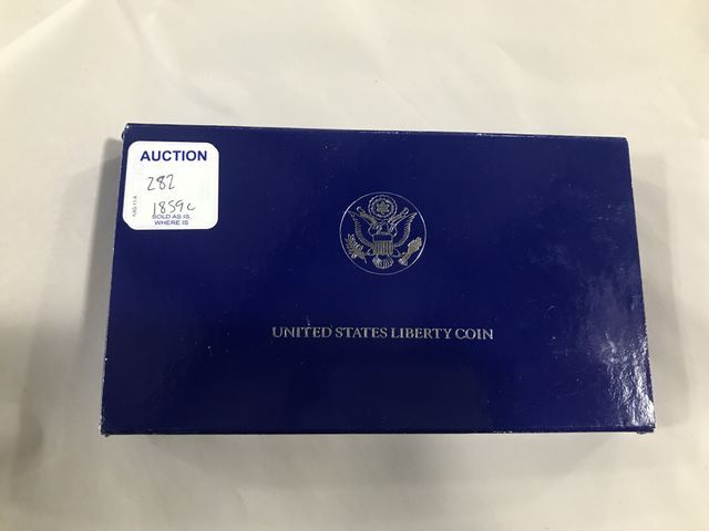1986 Liberty Silver Dollar, proof, S mark, .900 fine, .77 troy oz silver, in case. 1986 Liberty Silver Dollar, proof, S mark, .900 fine, .77 troy oz silver, in case.