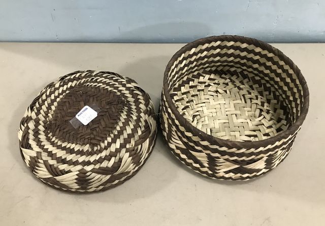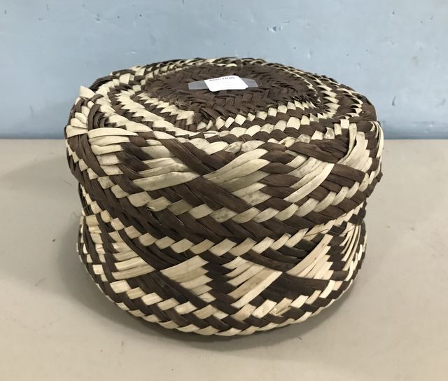Tarahumara Agave Hand Woven Basket, covered basket, hand painted, Copper Canyon, 6"h., 8"dia. Tarahumara Agave Hand Woven Basket, covered basket, hand painted, Copper Canyon, 6"h., 8"dia.
