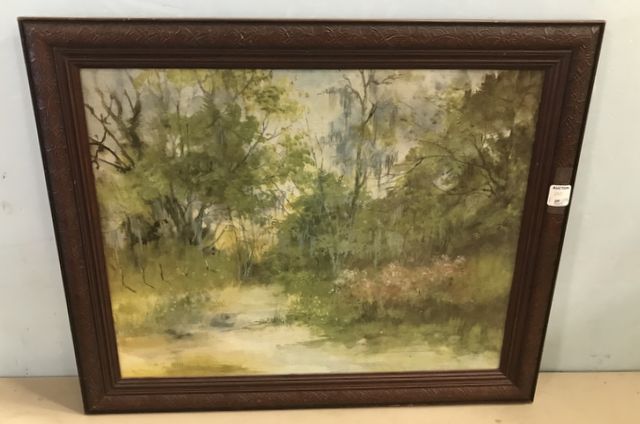 Creek Landscape Painting of Canvas, signed lower left, modern framed, 19"h., 22"w. Creek Landscape Painting of Canvas, signed lower left, modern framed, 19"h., 22"w.