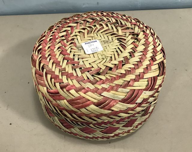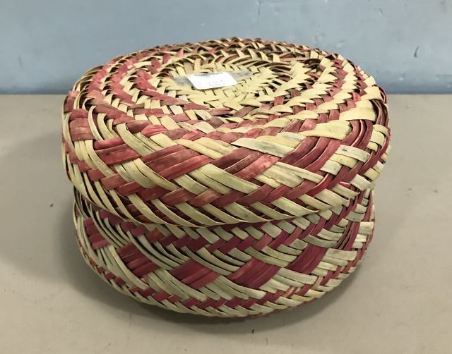 Tarahumara Agave Hand Woven Basket, covered basket, hand painted, Copper Canyon, 5"h., 8"dia. Tarahumara Agave Hand Woven Basket, covered basket, hand painted, Copper Canyon, 5"h., 8"dia.