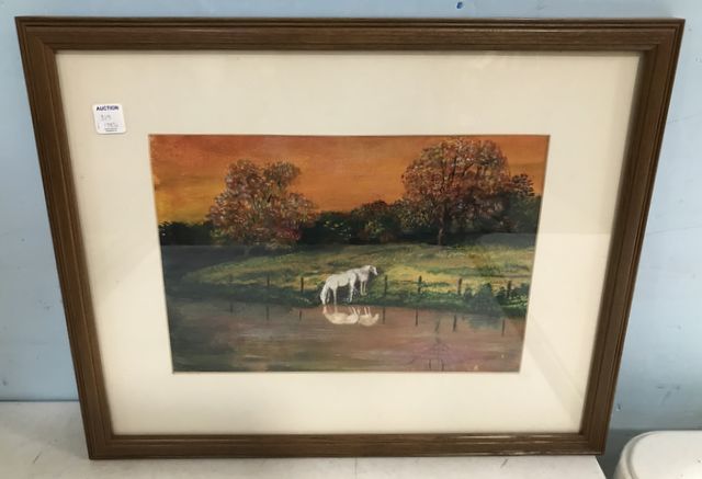 Pastel of Horse by Fran Sam, Oxford, MS artist, matted, framed, 22"w., 18"w. Pastel of Horse by Fran Sam, Oxford, MS artist, matted, framed, 22"w., 18"w.