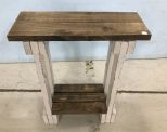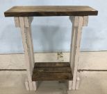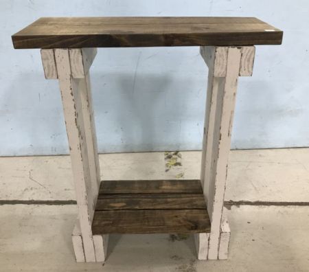 Hand Made Two Tier Stand, stained wood tops, white painted base, 34"h., 29"w., 11"d. Hand Made Two Tier Stand, stained wood tops, white painted base, 34"h., 29"w., 11"d.