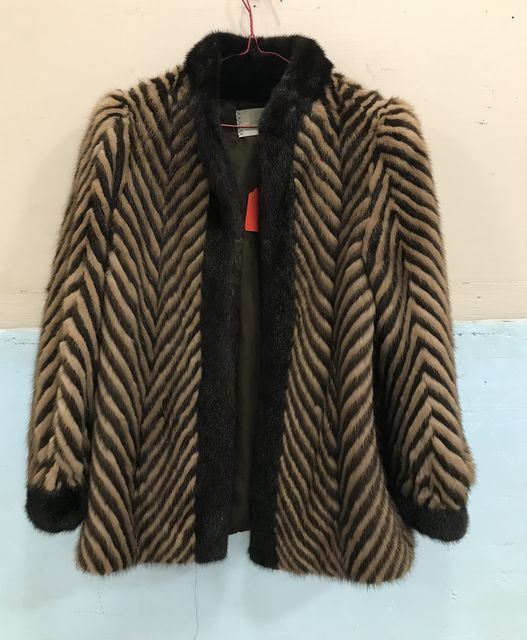 McRae's Herringbone Mink Jacket, with mahol-any mink tuxedo front cuffs, Autumn haze. McRae's Herringbone Mink Jacket, with mahol-any mink tuxedo front cuffs, Autumn haze.
