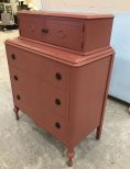 Vintage Depression Era Chest of Drawers, painted pink, three drawers, two door top storage, 53"h., 39"w., 20"d. Vintage Depression Era Chest of Drawers, painted pink, three drawers, two door top storage, 53"h., 39"w., 20"d.
