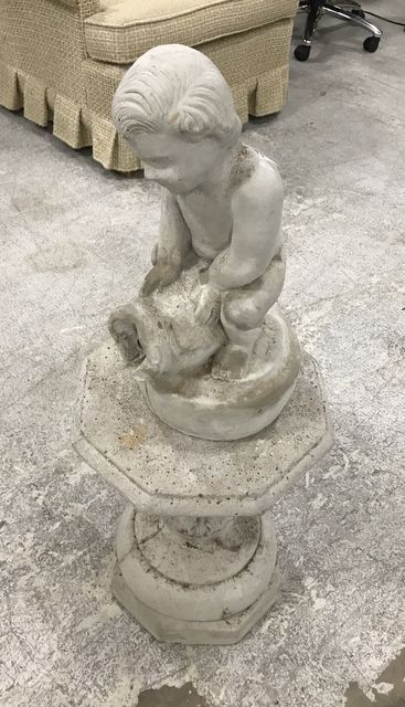 Concrete Water Fountain Child Statue and Concrete Pedestal, pieces do not match, 33"h. Concrete Water Fountain Child Statue and Concrete Pedestal, pieces do not match, 33"h.