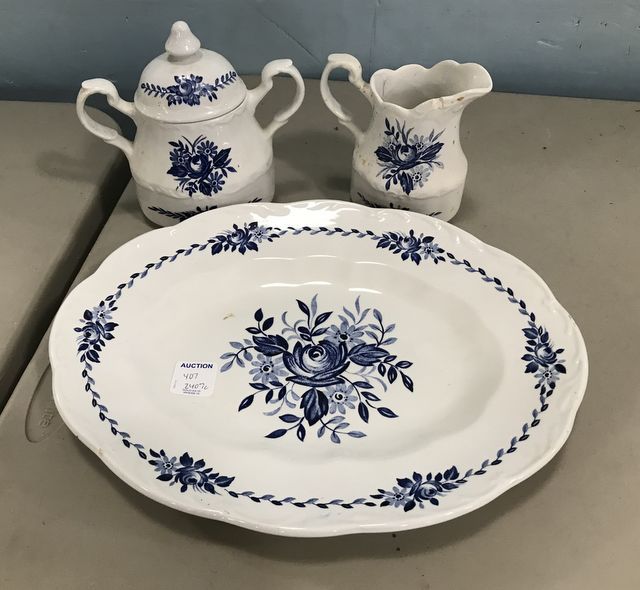 407 Dresden Blue Ironstone Platter, Creamer, Sugar