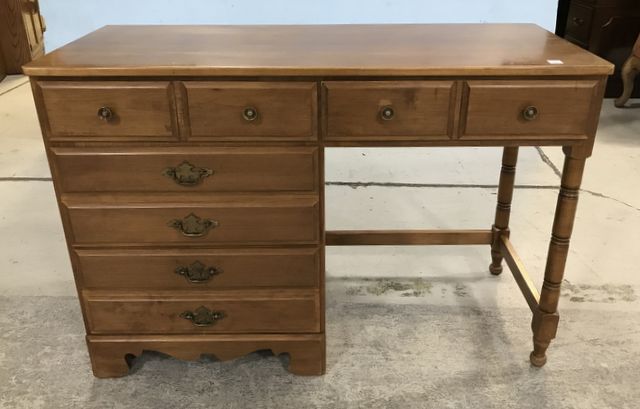 Sprague Carleton Maple Knee Hole Desk, three drawers, some finish wear, 30"h., 44"w., 18"d. Sprague Carleton Maple Knee Hole Desk, three drawers, some finish wear, 30"h., 44"w., 18"d.