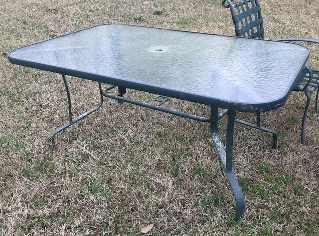 Modern Outdoor Patio Table, glass top, umbrella slot. Modern Outdoor Patio Table, glass top, umbrella slot.