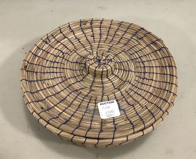 Hand Woven Straw Covered Basket, origin unknown, good condition, 3"h., 9"dia. Hand Woven Straw Covered Basket, origin unknown, good condition, 3"h., 9"dia.