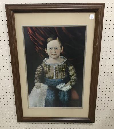Framed Child with Dog Print, print of vintage artwork, matted, framed, 33"h., 23"w. Framed Child with Dog Print, print of vintage artwork, matted, framed, 33"h., 23"w.