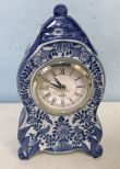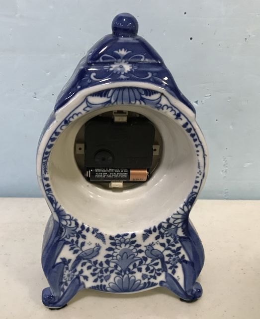Modern Blue and White Porcelain Small Clock, battery operate works, 9"h. Modern Blue and White Porcelain Small Clock, battery operate works, 9"h.