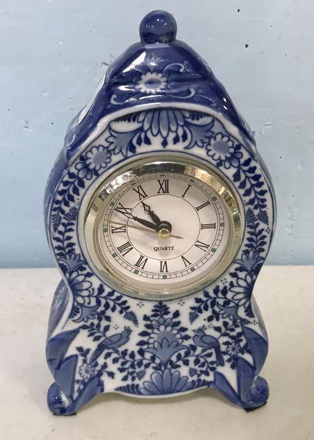 577 Modern Blue and White Porcelain Small Clock