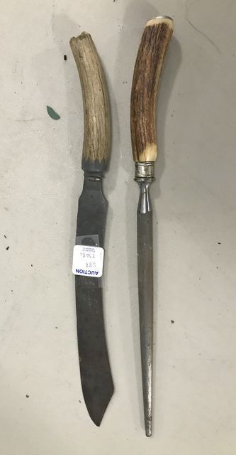 Vintage Antler Handle Knife and Knife Sharper, rustic blade, hand made, 12". Vintage Antler Handle Knife and Knife Sharper, rustic blade, hand made, 12".