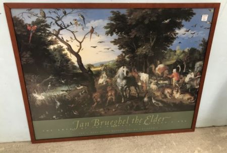 Jan Brueghel the Elder print, animals into Noah's Ark, framed, 27"h., 34"w. Jan Brueghel the Elder print, animals into Noah's Ark, framed, 27"h., 34"w.