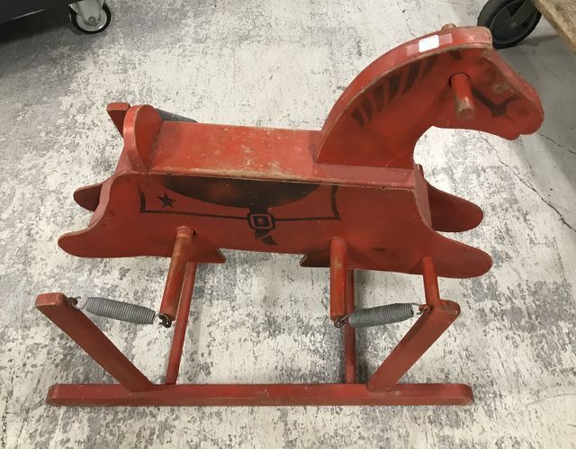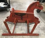 Vintage Red Painted Child's Rocking Horse, wood, has finish wear. Vintage Red Painted Child's Rocking Horse, wood, has finish wear.