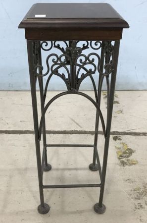 Modern Metal Decor Plant Stand, square wood top, painted metal stand, 27"h., 10"w. Modern Metal Decor Plant Stand, square wood top, painted metal stand, 27"h., 10"w.