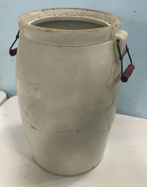 Large Crown Mark No. 8 Stoneware Crock, has handles, has several repaired cracks, no lid, 20"h., 11"dia. Large Crown Mark No. 8 Stoneware Crock, has handles, has several repaired cracks, no lid, 20"h., 11"dia.