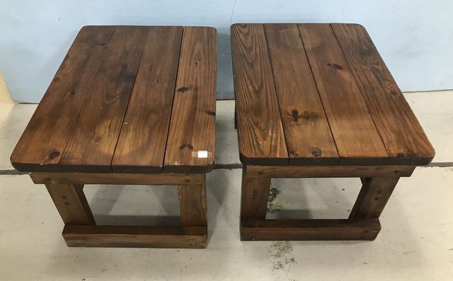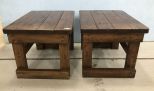 Pair of Primitive Style Hand Made Side Tables, well made, stained, sturdy, 20"h., 29"d., 21"w. Pair of Primitive Style Hand Made Side Tables, well made, stained, sturdy, 20"h., 29"d., 21"w.