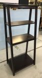 Modern Cherry display stand, four shelves, has finish wear, 54"h., 24"w., 16"d. Modern Cherry display stand, four shelves, has finish wear, 54"h., 24"w., 16"d.