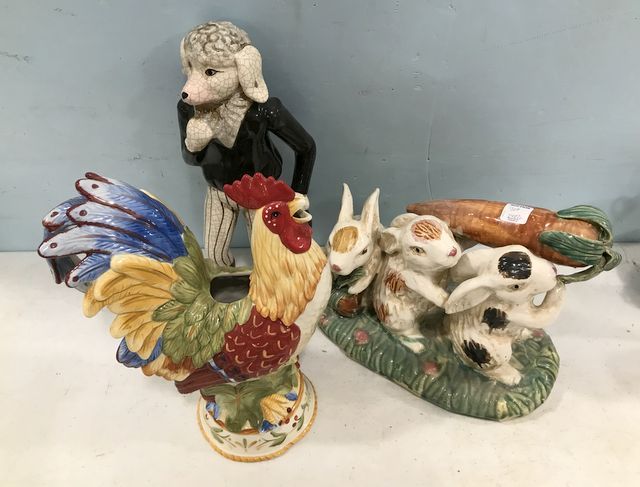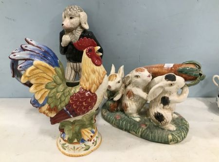 Ceramic Hand Painted Figurines, ceramic dog 14"h., rabbit hand painted statue, rooster vase. Ceramic Hand Painted Figurines, ceramic dog 14"h., rabbit hand painted statue, rooster vase.