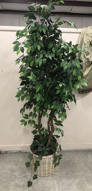 Artificial Tree, medium size, woven basket, 85"h. Artificial Tree, medium size, woven basket, 85"h.