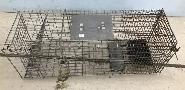 Metal animal trapping cage, 36"w. Metal animal trapping cage, 36"w.