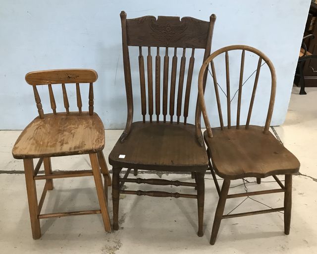 780 Antique Oak Pressed Back Side Chair, Bentwood Chair, and Stool