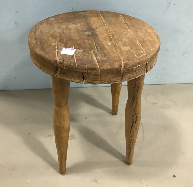 Primitive style stool, hand made, 13"h., 15"dia. Primitive style stool, hand made, 13"h., 15"dia.