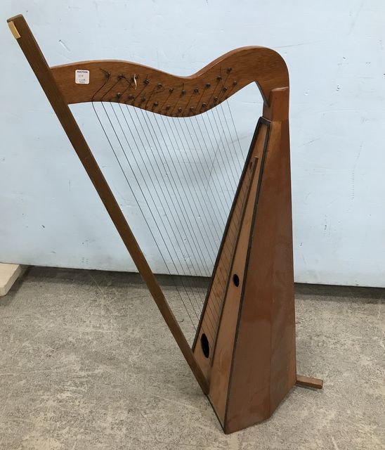 Vintage wood replica harp instrument, 43"h., 22"w. Vintage wood replica harp instrument, 43"h., 22"w.