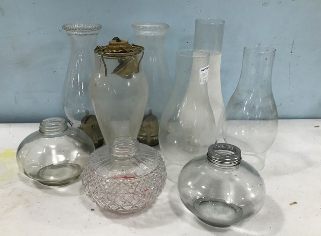Group of Hurricane Shades and Oil Containers, 6 shades, 3 oil containers. Group of Hurricane Shades and Oil Containers, 6 shades, 3 oil containers.
