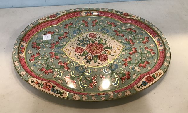 Daher Decorated Ware Tin Tray, 1971, Designed by Daher Long Island, NY, made in England, has some scratches, 20"w. Daher Decorated Ware Tin Tray, 1971, Designed by Daher Long Island, NY, made in England, has some scratches, 20"w.