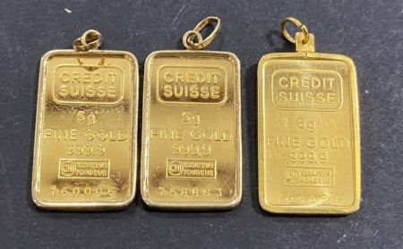 284 Three 1979 Credit Suisse 5g Gold Bar Pendants