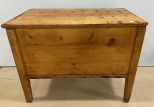 Antique Primitive Storage Trunk, lift top, tapered legged, has aged condition wear, 29"h., 38"w., 22"d. Antique Primitive Storage Trunk, lift top, tapered legged, has aged condition wear, 29"h., 38"w., 22"d.
