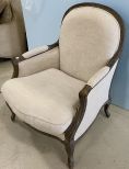 French Style arm chair, distressed factory painted, feather down cushions, new. French Style arm chair, distressed factory painted, feather down cushions, new.