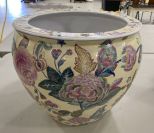 Chinese Porcelain Rose Bowl Planter, porcelain, rose pattern, 12"h., 14"dia. Chinese Porcelain Rose Bowl Planter, porcelain, rose pattern, 12"h., 14"dia.