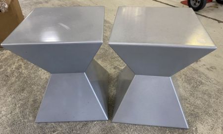 Pair of Contemporary Silver Pedestal Stands, hard plastic, 17"h., 13"w. Pair of Contemporary Silver Pedestal Stands, hard plastic, 17"h., 13"w.