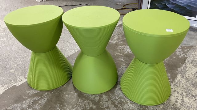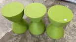 Three Contemporary Green Pedestal Stands, hard plastic, 17"h., 12"dia. Three Contemporary Green Pedestal Stands, hard plastic, 17"h., 12"dia.