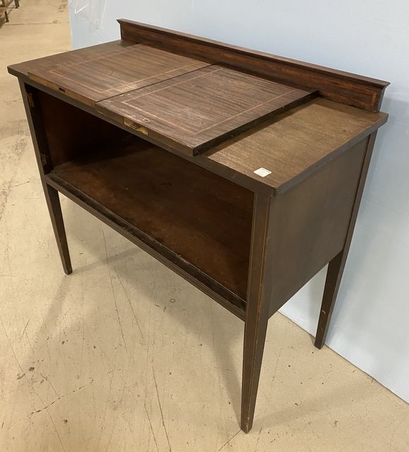 Vintage Federal Style server, inlaid trim, mahogany, two doors, missing hinges, has wear, 34"h. 40"w., 18"d. Vintage Federal Style server, inlaid trim, mahogany, two doors, missing hinges, has wear, 34"h. 40"w., 18"d.