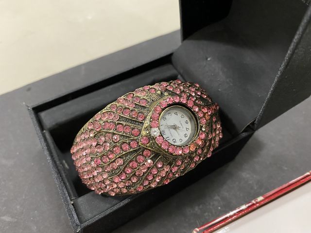 Decorative Metal and Crystal Pins and Grace Lynn Cuff Watch in case. Decorative Metal and Crystal Pins and Grace Lynn Cuff Watch in case.
