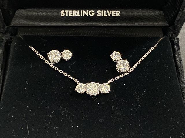 Macy's Sterling Silver Necklace and Earrings, clear stones. Macy's Sterling Silver Necklace and Earrings, clear stones.