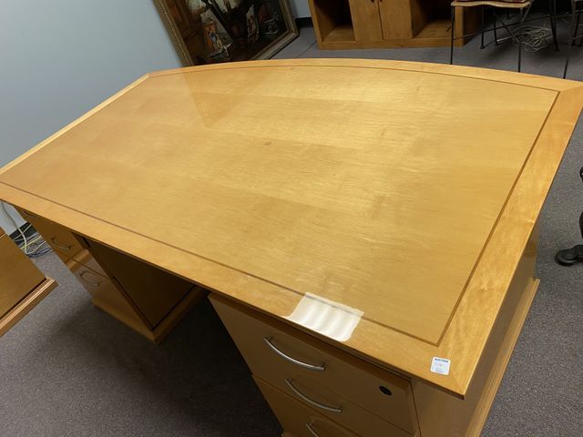 Like New Maple Executive Office Desk, 6 drawers, clear coat finish, comes in three pieces, 30"h., 72"w., 42"d. Like New Maple Executive Office Desk, 6 drawers, clear coat finish, comes in three pieces, 30"h., 72"w., 42"d.