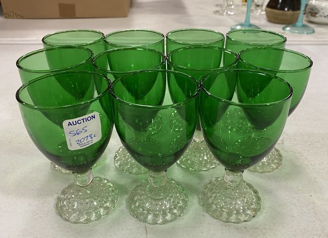 11 Vintage Anchor Hocking Forest Green Boopie Glasses, no chips, 4 1/2"h. 11 Vintage Anchor Hocking Forest Green Boopie Glasses, no chips, 4 1/2"h.