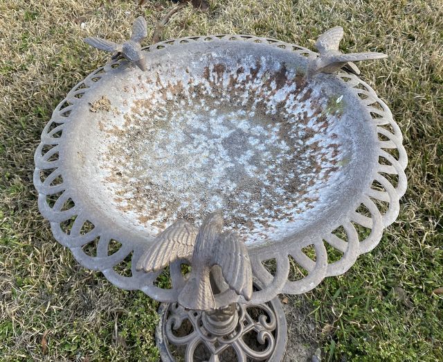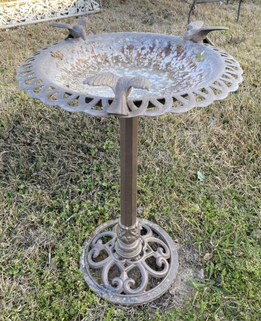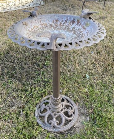 Metal Outdoor Bird Bath Stand, decorative, with birds. Metal Outdoor Bird Bath Stand, decorative, with birds.