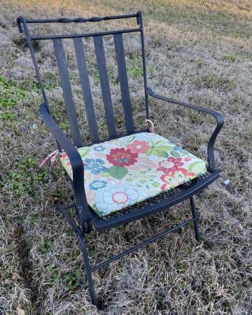 Black Wrought Iron Patio Arm Chair, with cushion. Black Wrought Iron Patio Arm Chair, with cushion.