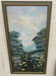 Landscape Painting by Richard Felman, oil on board, framed, 32"h., 17"w. Landscape Painting by Richard Felman, oil on board, framed, 32"h., 17"w.
