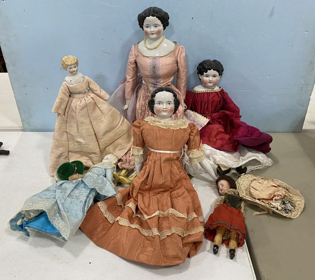 Six Antique Porcelain dolls, three German porcelain, hand painted, late 1800's, largest is 29"h. Six Antique Porcelain dolls, three German porcelain, hand painted, late 1800's, largest is 29"h.